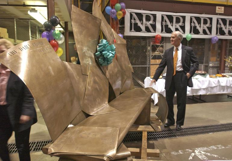 News and Record Bench by Jim Gallucci is a silicon-bronze bench made up of sheets of newspaper, magazines, and boxes. This bench honors a former News & Record publisher Van King who retired in 2004. This bench was moved to LeBauer Park in 2020 as a gift from the News & Record and through a partnership with the Greensboro Downtown Parks Inc., The Community Foundation of Greater Greensboro and the Public Art Endowment. It is placed in the SW entrance to the park by Davie Street. It is now adjacent to what was the original News & Record building – the Greensboro Cultural Center.