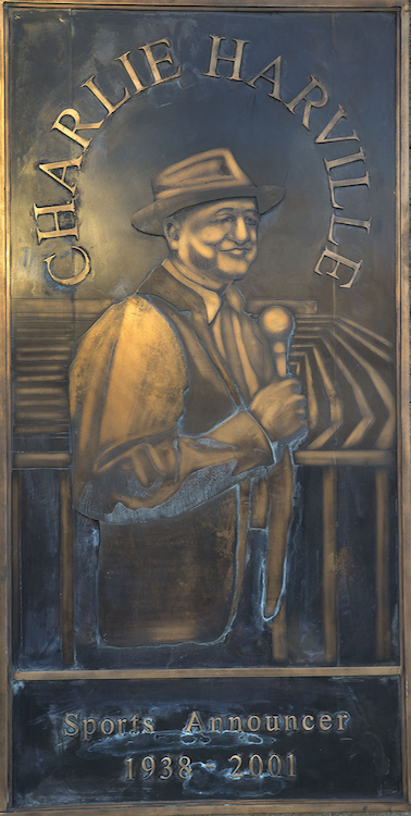 The First Horizon Park Baseball Plaques show a series of people who were baseball players in Greensboro or otherwise associated with our baseball program. Each figure has his own plaque with a relief carving of the figure eitherp laying baseball or at the baseball stadium.