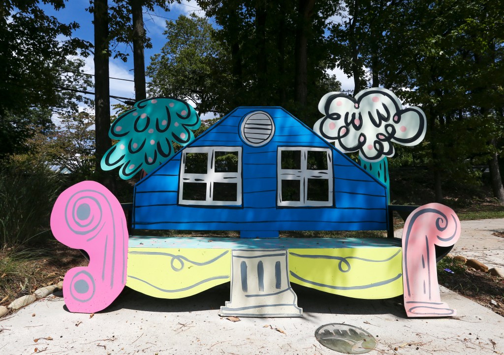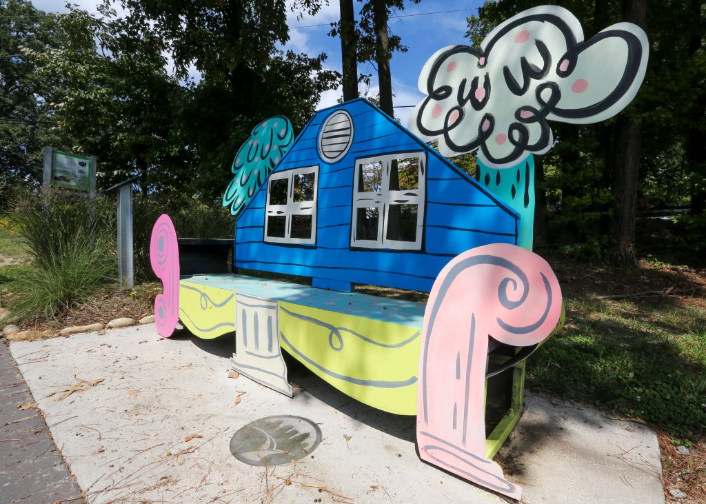Daydreamers at play is a bench created by Nico Amortegui in 2021. Born and raised in Colombia and currently residing in Charlotte, Amortegui’s work is often expressionist and very colorful.