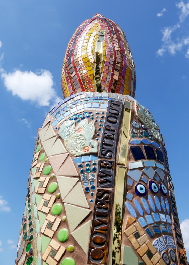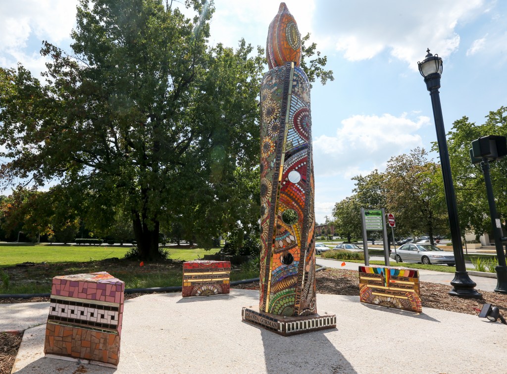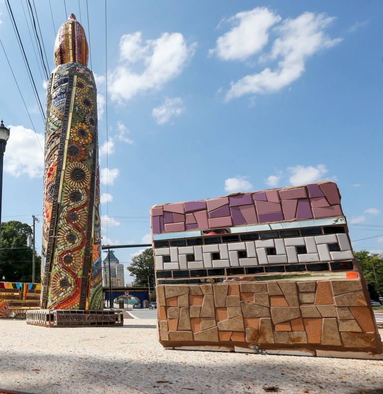 Vigilance is a bench and mosaic installation located along the Downtown Greenway by Theresa Arico. Arico completed this work, which contains excerpts from Amanda Gorman’s poem The Hill We Climb, in 2021.