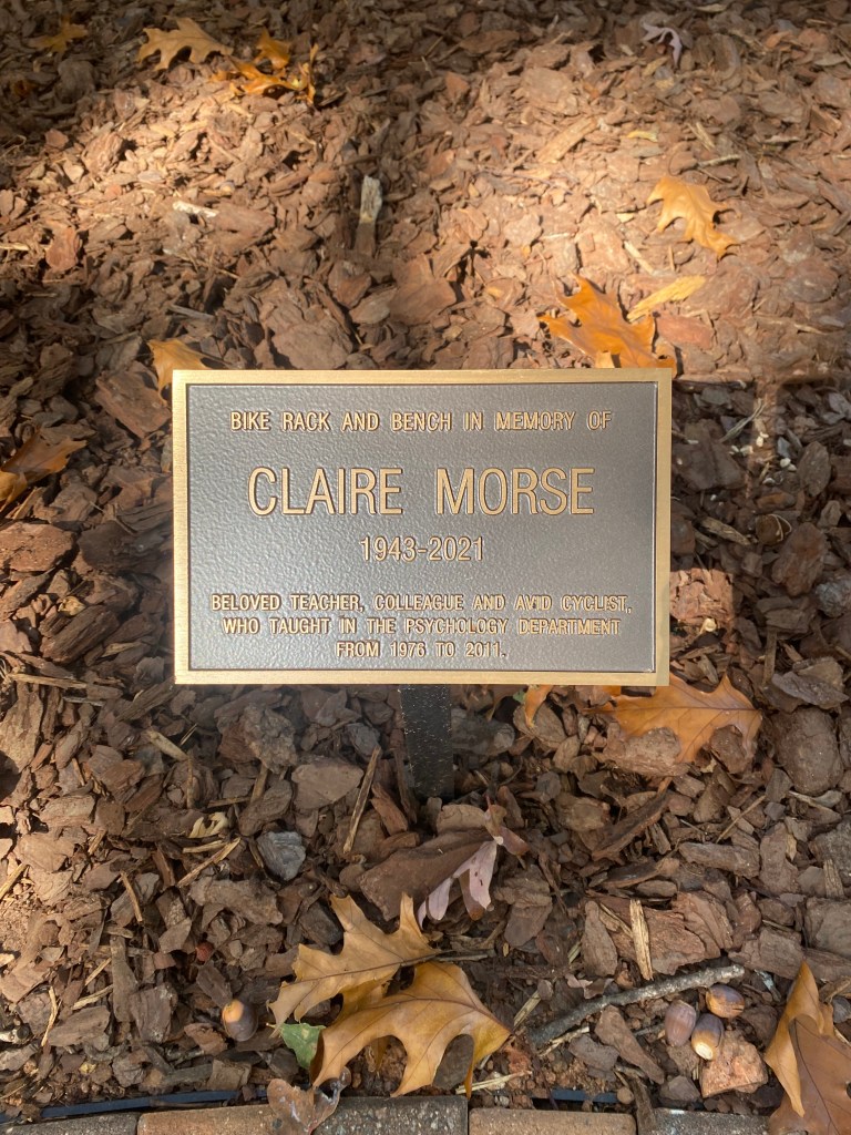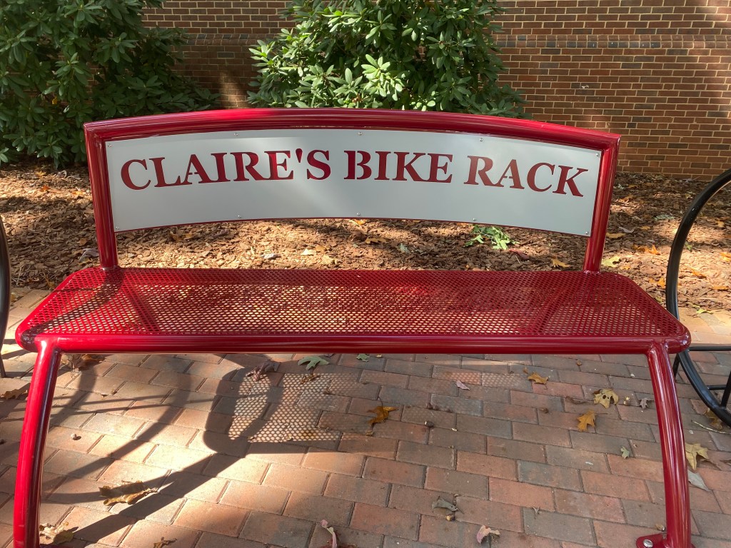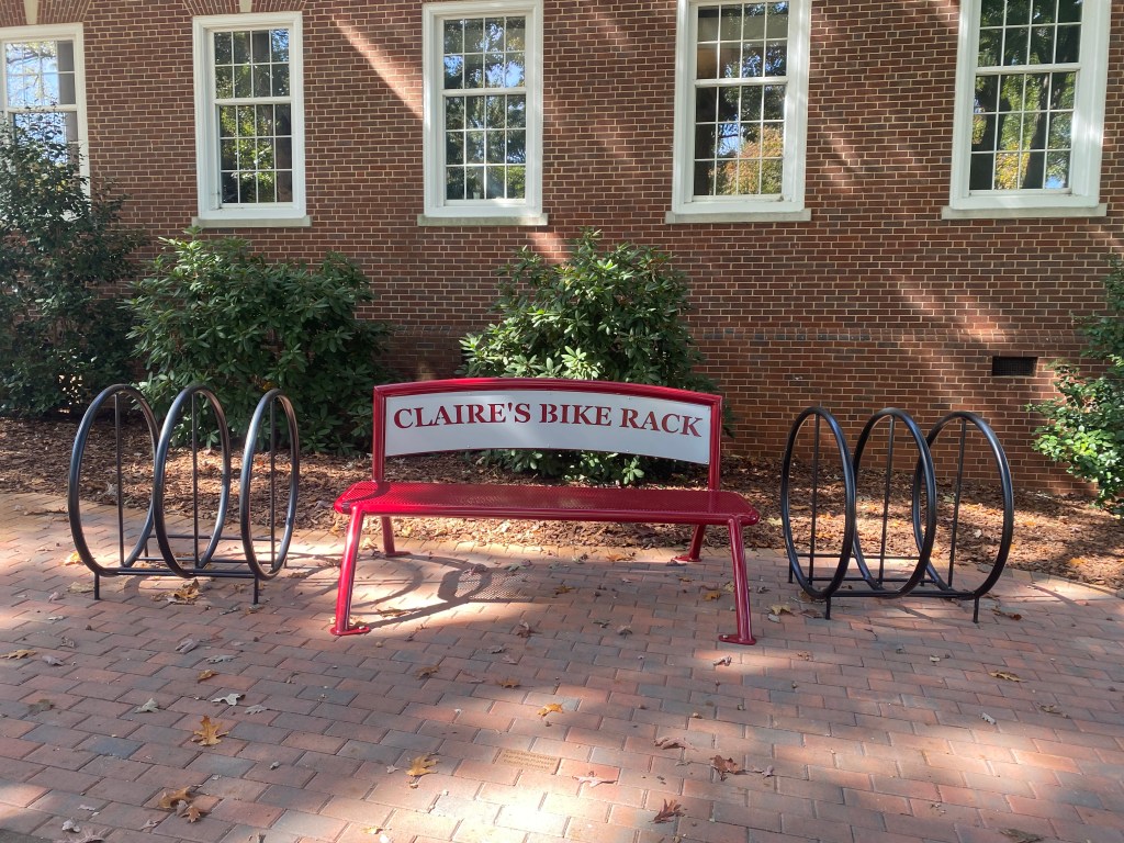 Dedicated in 2022, Claire’s Bike Rack is located outside the King academic building on Guilford college’s campus. Claire Morse was a dedicated professor of psychology at the college for over 30 years.